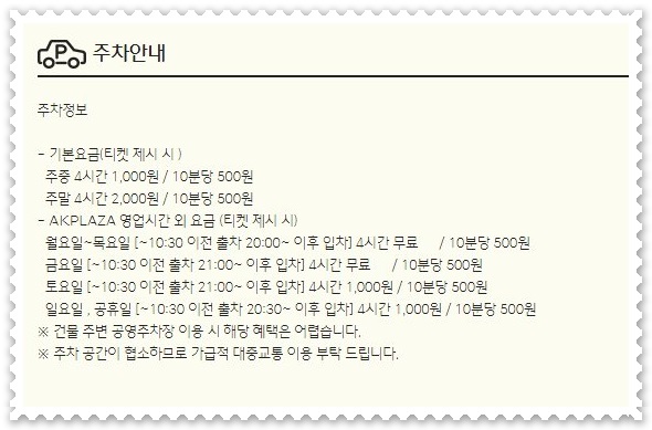 cgv 평택점은 평택역 안에 위치하고 있습니다. 평택 cgv 주차장 이용 시 참고하시기 바랍니다. 주차요금은 주중 4시간 주차권의 경우 1,000원, 주말 4시간 주차권의 경우 2,000원에 구매가 가능합니다.
