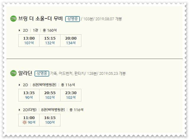 인기작답게 오늘 하루 영화 상영만 총 18번이 예정되어 있다고 합니다.