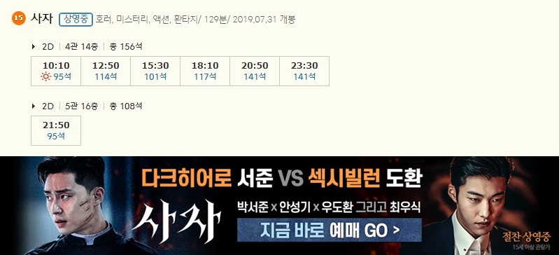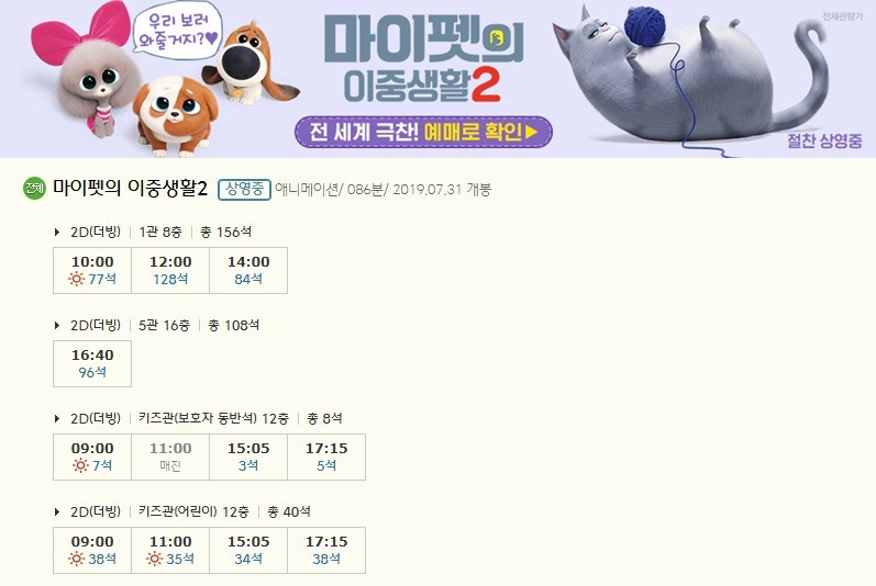 | 세종CGV 상영시간표 : 이번달 영화 예매순위 (0) | 2019.08.04 |