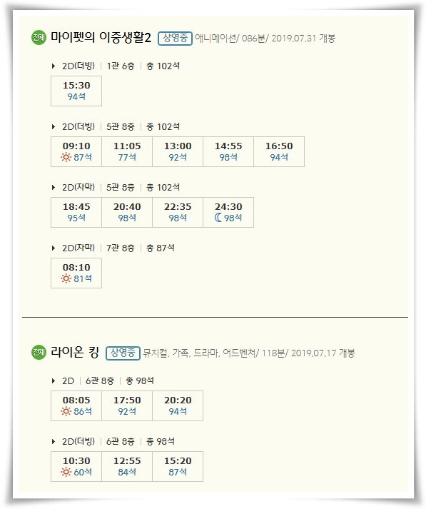 | 세종CGV 상영시간표 : 이번달 영화 예매순위 (0) | 2019.08.04 |