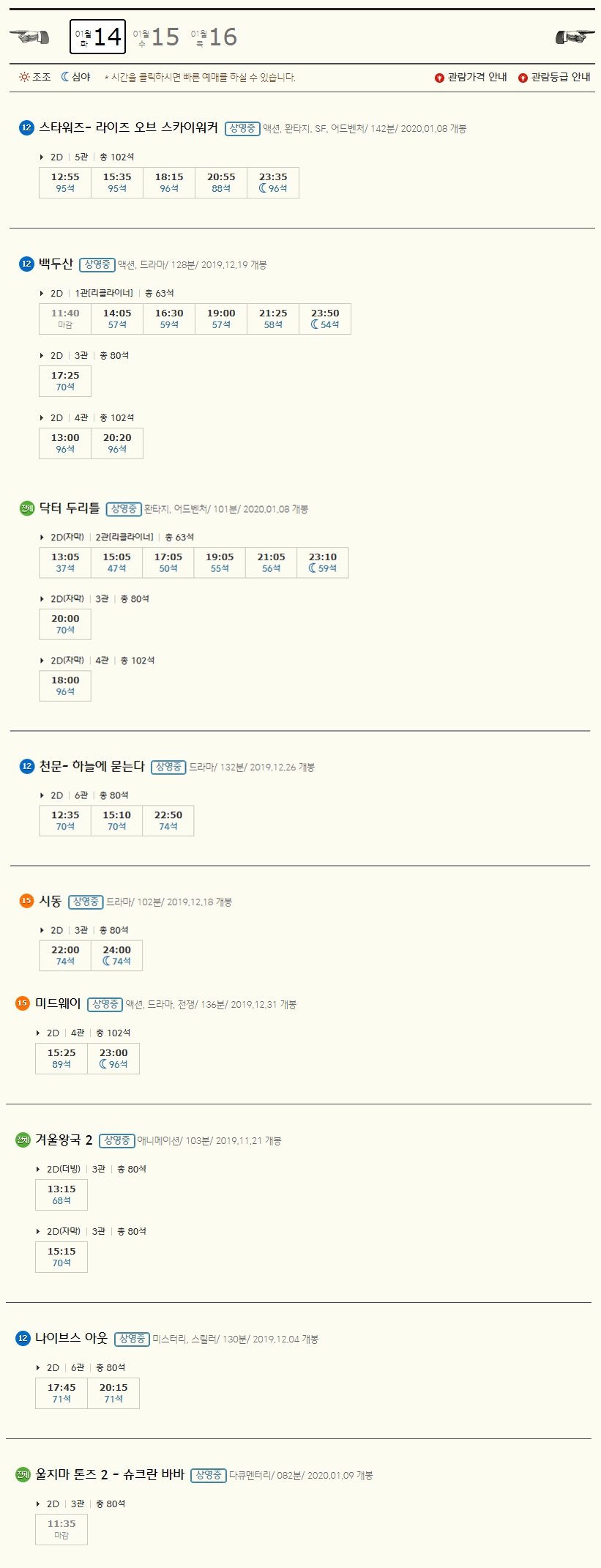 | 하계 cgv 상영시간표 및 박스오피스 예매순위 (0) | 2020.01.16 |