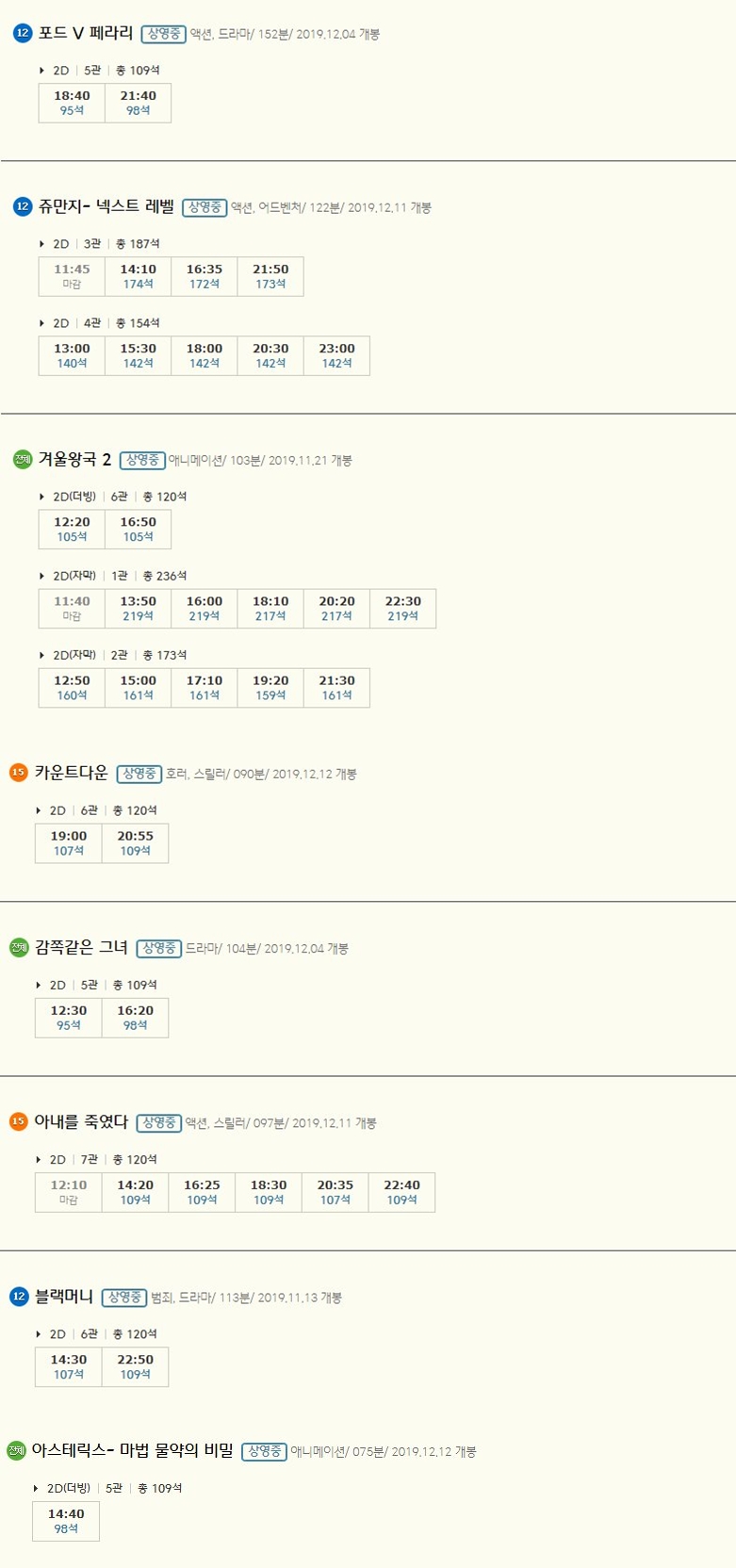 | 김포풍무 cgv 상영시간표, 현재상영작 및 예매순위 (0) | 2019.12.15 |