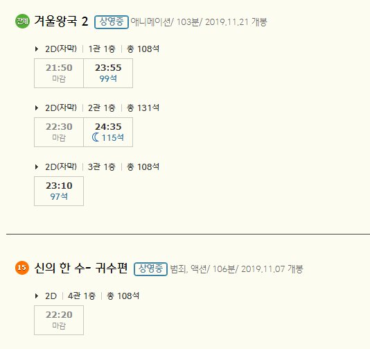 얼마 전 개봉한 겨울왕국 2, 신의 한 수 : 귀수편이 오늘 상영 중인 영화로 소개되고 있습니다.
