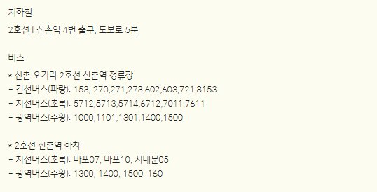 신촌역과 이대역의 중간에 위치하고 있지만 신촌역에서 하차 후 도보로 이동하는 것이 조금더 가깝다고 할수 있습니다.