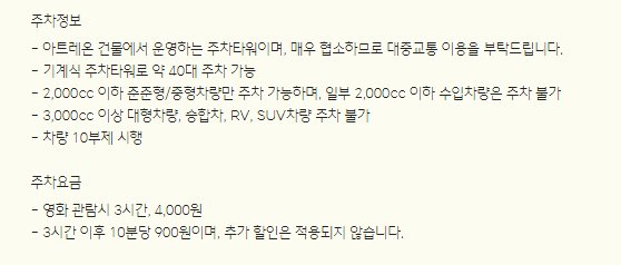 특히 신촌 CGV 아트레온점의 경우 주차공간이 상당히 협소하기 때문에 가급적이면 대중교통을 이용하시는 것이 좋다고 합니다.