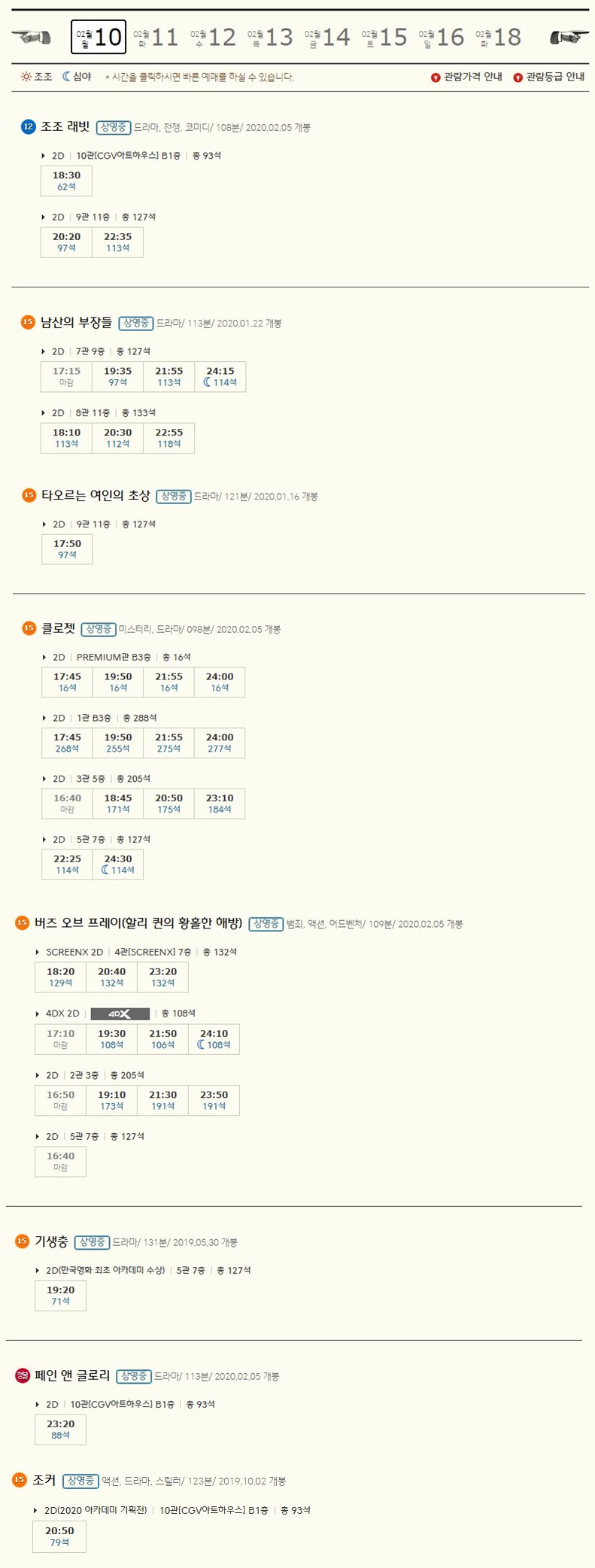 | 용산 CGV 상영시간표 및 현재상영작 (0) | 2020.02.24 |