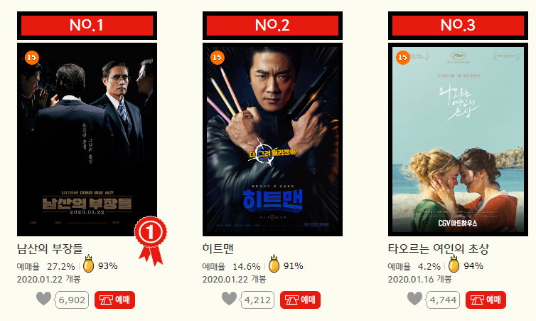 최고의 인기작은 바로 이병헌, 이성민, 곽도원, 이희준씨 주연의 남산의 부장들입니다.
