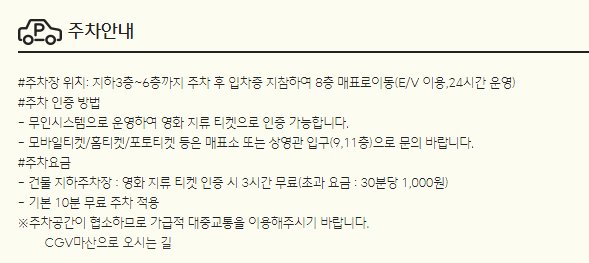 당일 영화 관람객들의 경우 지하 주차장을 이용할수가 있는데요 3시간까지 무료주차가 가능하다고 합니다.