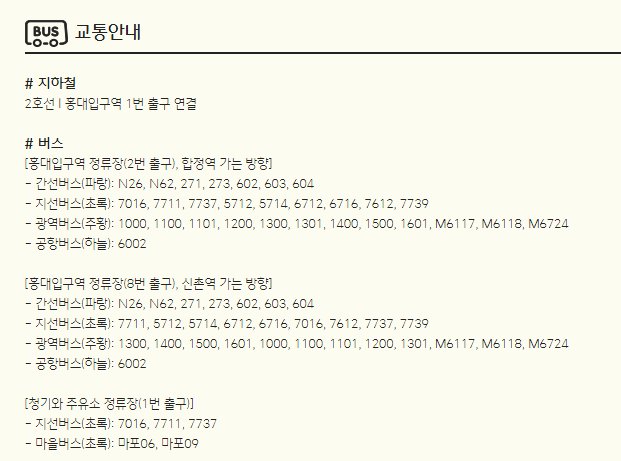 워낙 핫 플레이스답게 많은 버스노선들이 홍대역에 하차하고 있는 만큼 대중교통을 이용하면 훨씬 쉽게 갈 수 있습니다.