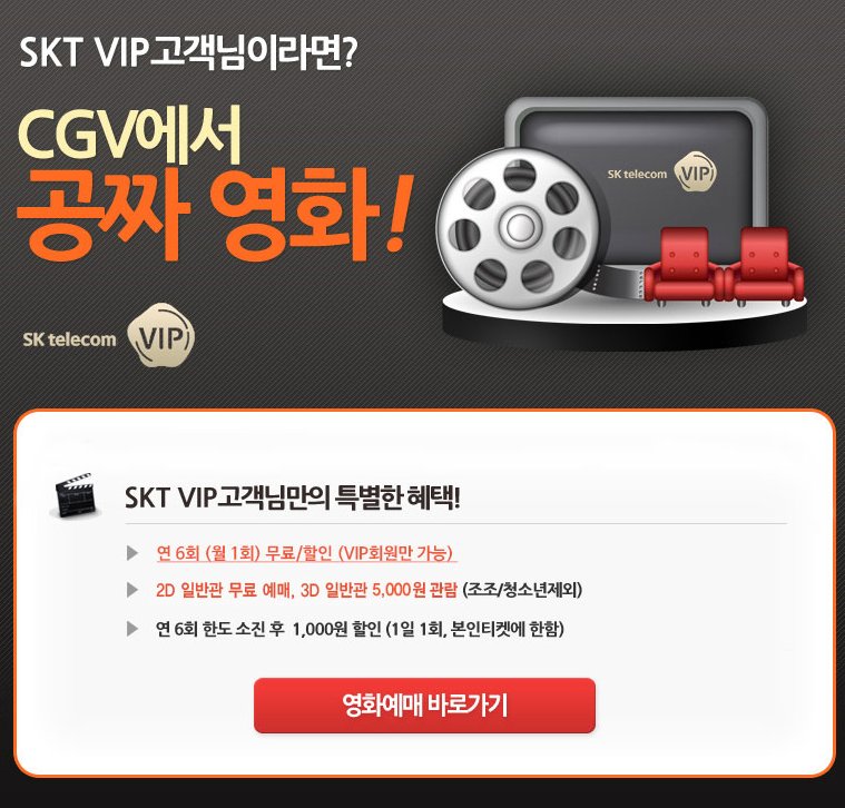 또한 통신사 VIP 회원들에게는 연 6회의 무료 영화 티켓이 제공되고 있습니다.