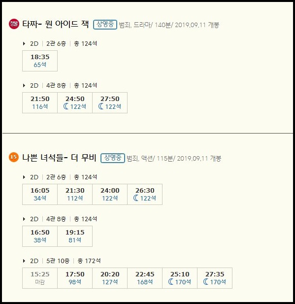 | 대구월성 cgv 상영시간표 : 현재상영작 안내 (0) | 2019.09.10 |