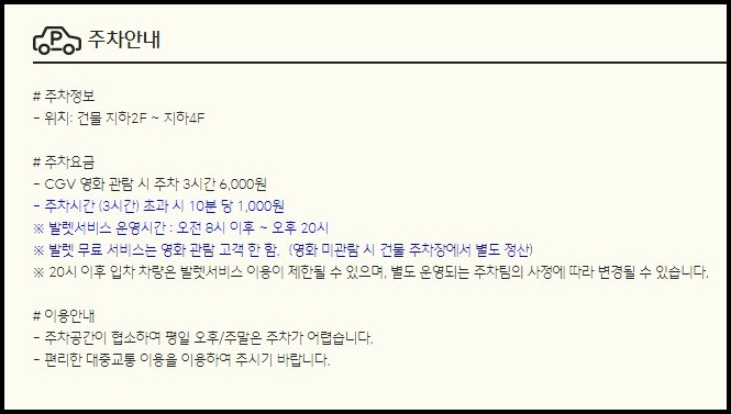 주차요금을 지불하고 영화를 관람할수도 있지만 강남 cgv 영화관 주차장의 경우 장소가 협소하기 때문에 가급적이면 대중교통을 이용하는 것이 좋습니다.